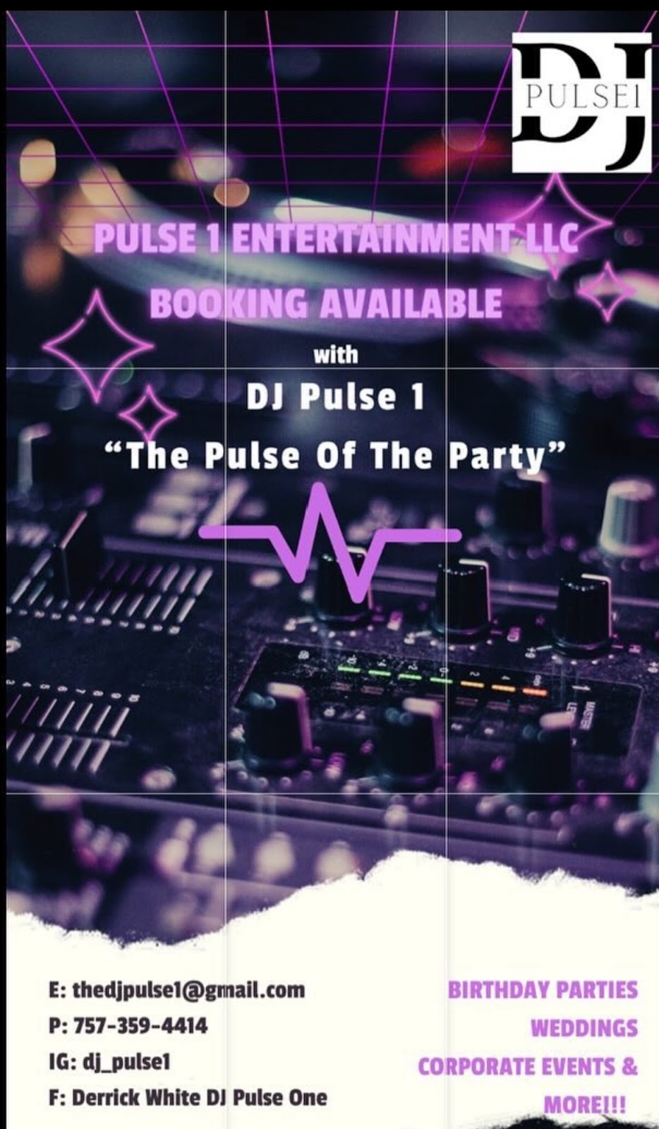 Pulse 1 Entertainment LLC, a premier DJ service in Virginia Beach, VA, boasts a perfect 5/5 rating from 19 delighted couples, making them the ideal choice for an unforgettable wedding experience.