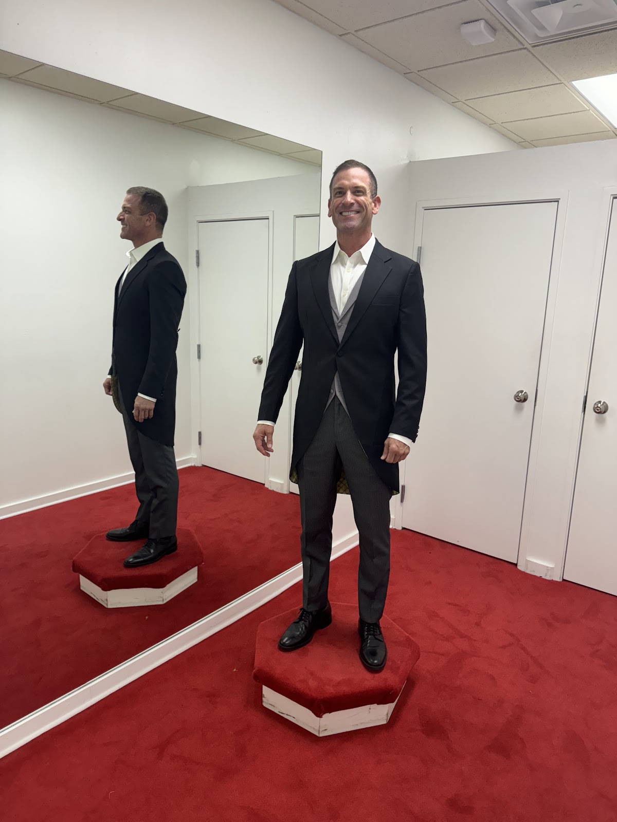 Discover the epitome of elegance at Red Carpet Tailor - Preston Center in Dallas, TX. As a premier suit tailor, our impeccable craftsmanship has earned us a stellar 5/5 rating from 870 delighted clients. Experience bespoke tailoring that transforms your wedding attire into a masterpiece.